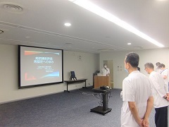 認定更新を受け、8月12日(木)院長先生より、全職員に対し、認定証のお披露目式を行いました。その席上、コロナ禍で、大変な時期に認定更新活動に従事したことを振り返りつつ、労いの言葉と合わせて、今後、更なる医療の質向上活動に努める旨の決意を表明されました。