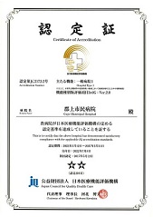 郡上市民病院は、当院の医療の質が、郡上市以外の他の地域・病院と比較し、適正な水準にあるか客観的な指標・判断を求める目的で、第三者機関「公益社団法人 病院機能評価機構」の訪問審査を受審し、適正・合格との判断を頂いたことから、平成29年5月より、病院機能評価機構が定める(医療の質が適正であるとの意味を持つ)「認定病院」となっております。
